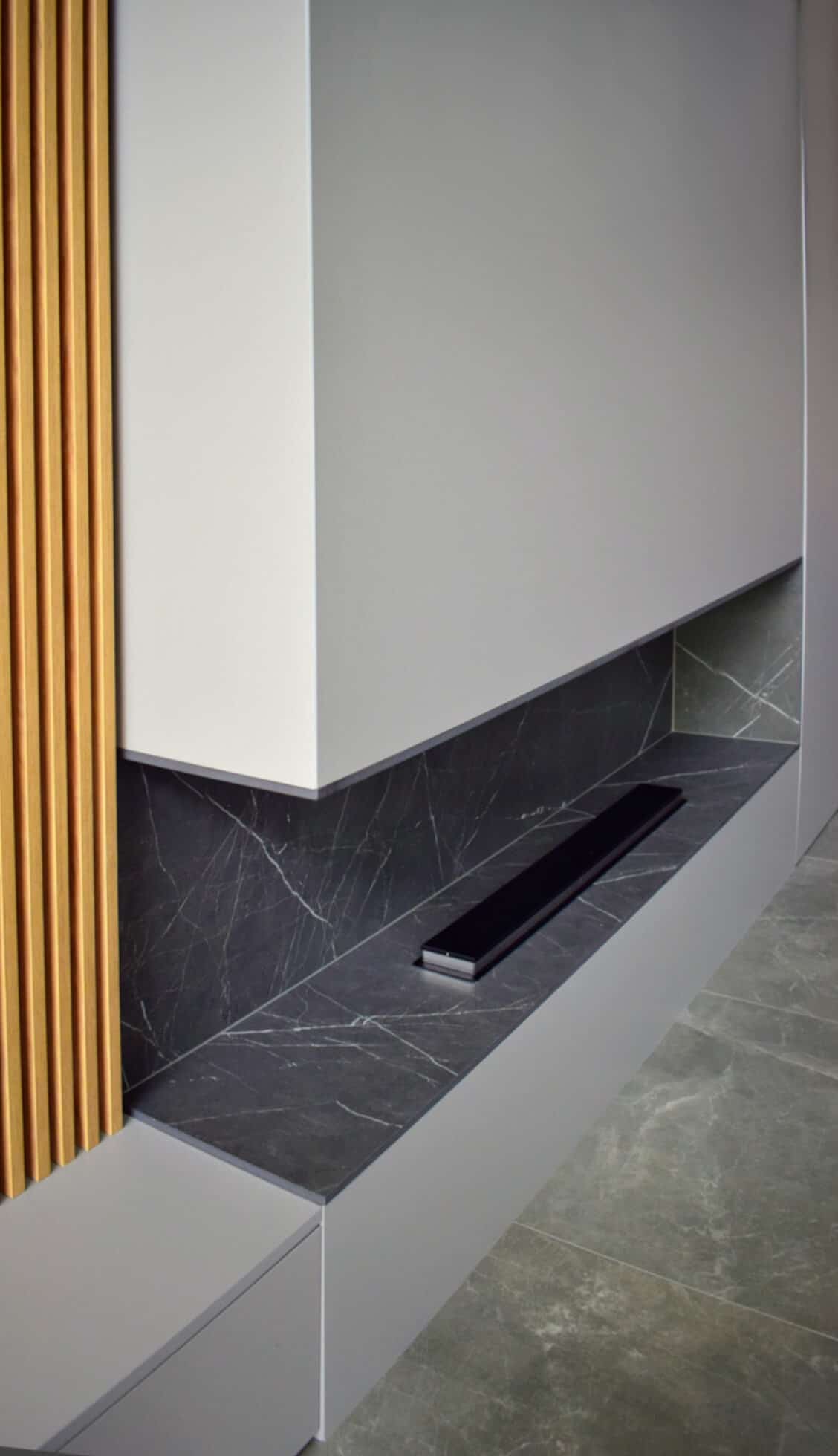Płyty kamienne oraz spieki kwarcowe radzą sobie z tymi wyzwaniami znacznie lepiej niż drewno, MDF czy klasyczne tynki, które pod wpływem ciepła po prostu degradują.